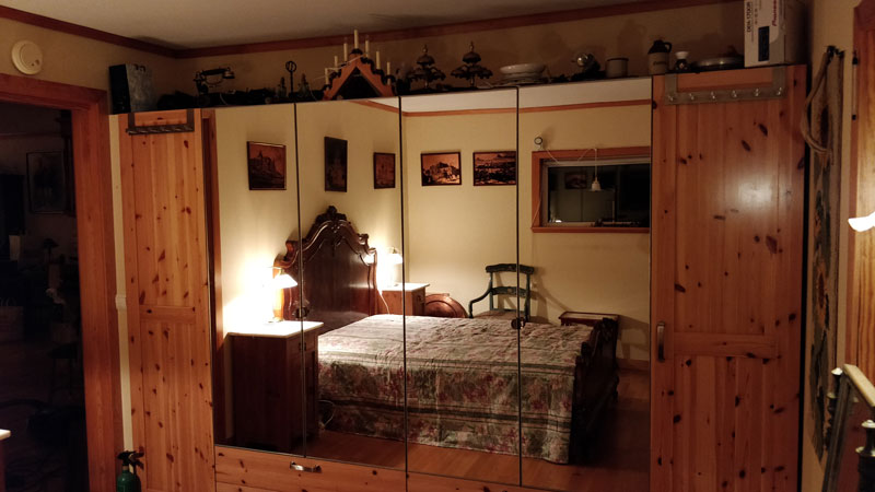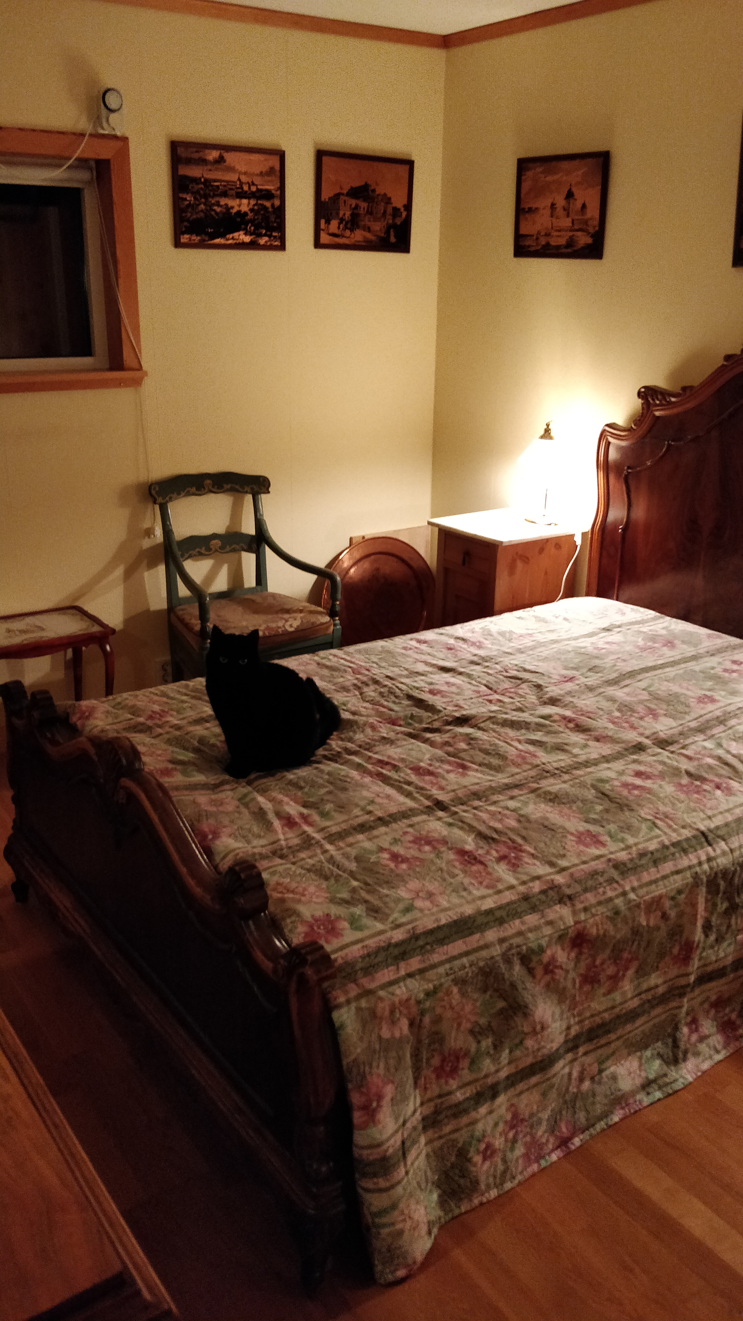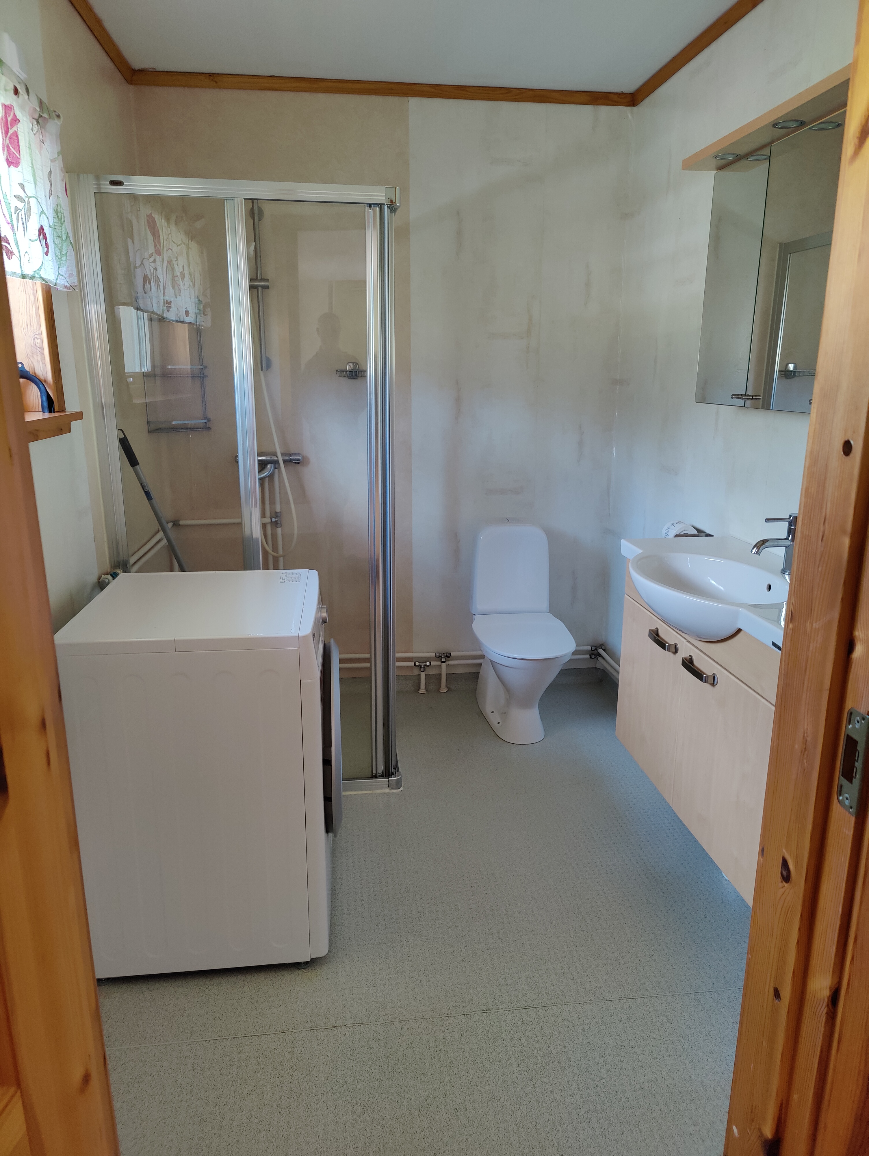 Det ligger en liten stuga på tomten som vi använder för förvaring och under bostaden finns en verkstad. Dessa ingår alltså inte i hyran. Någon gång emellanåt (inte ofta) kommer vi att vara där för att hämta saker eller köra saker till tippen. På taket finns en solcellsanläggning, och den ingår inte heller i hyran.
