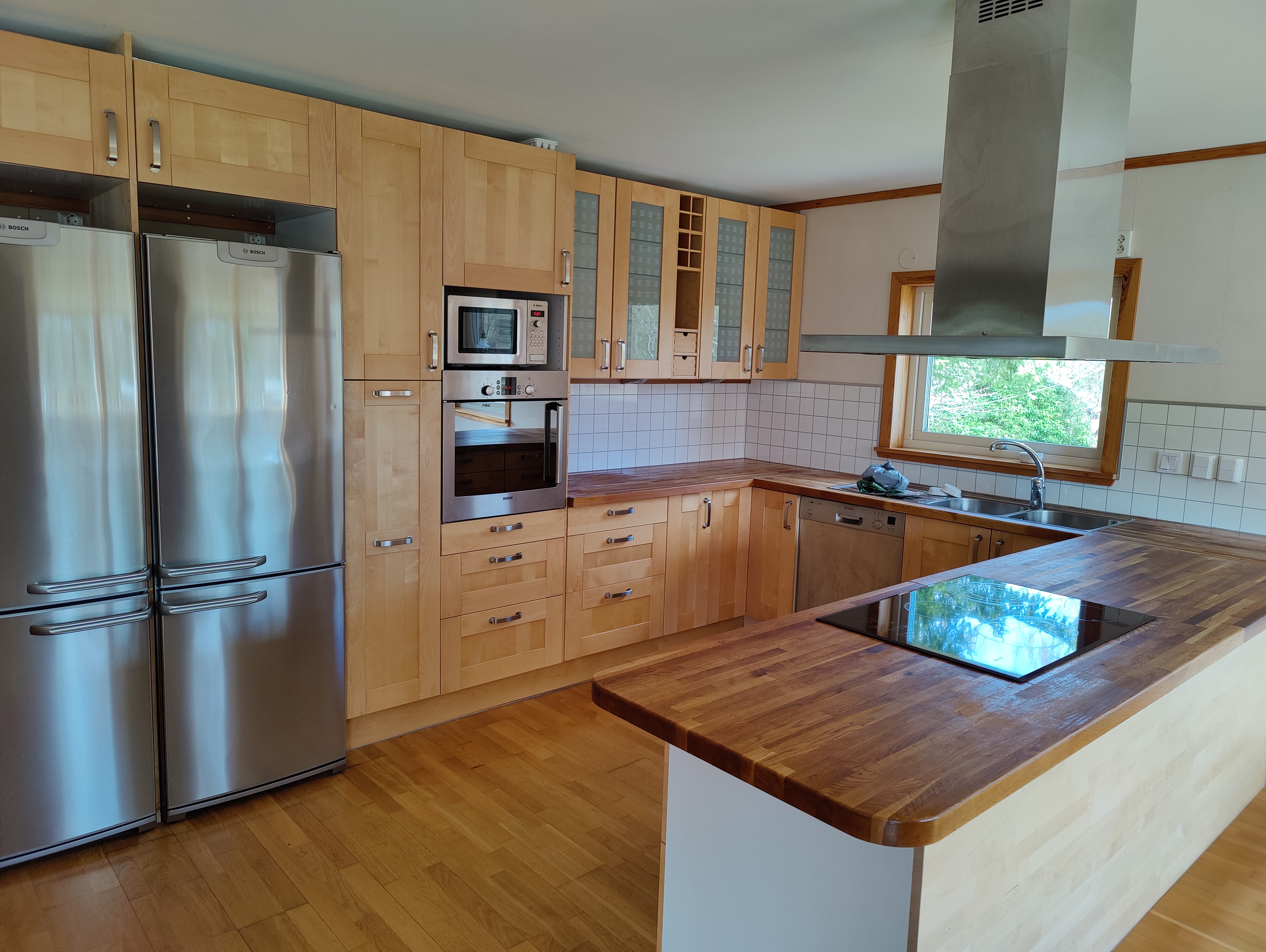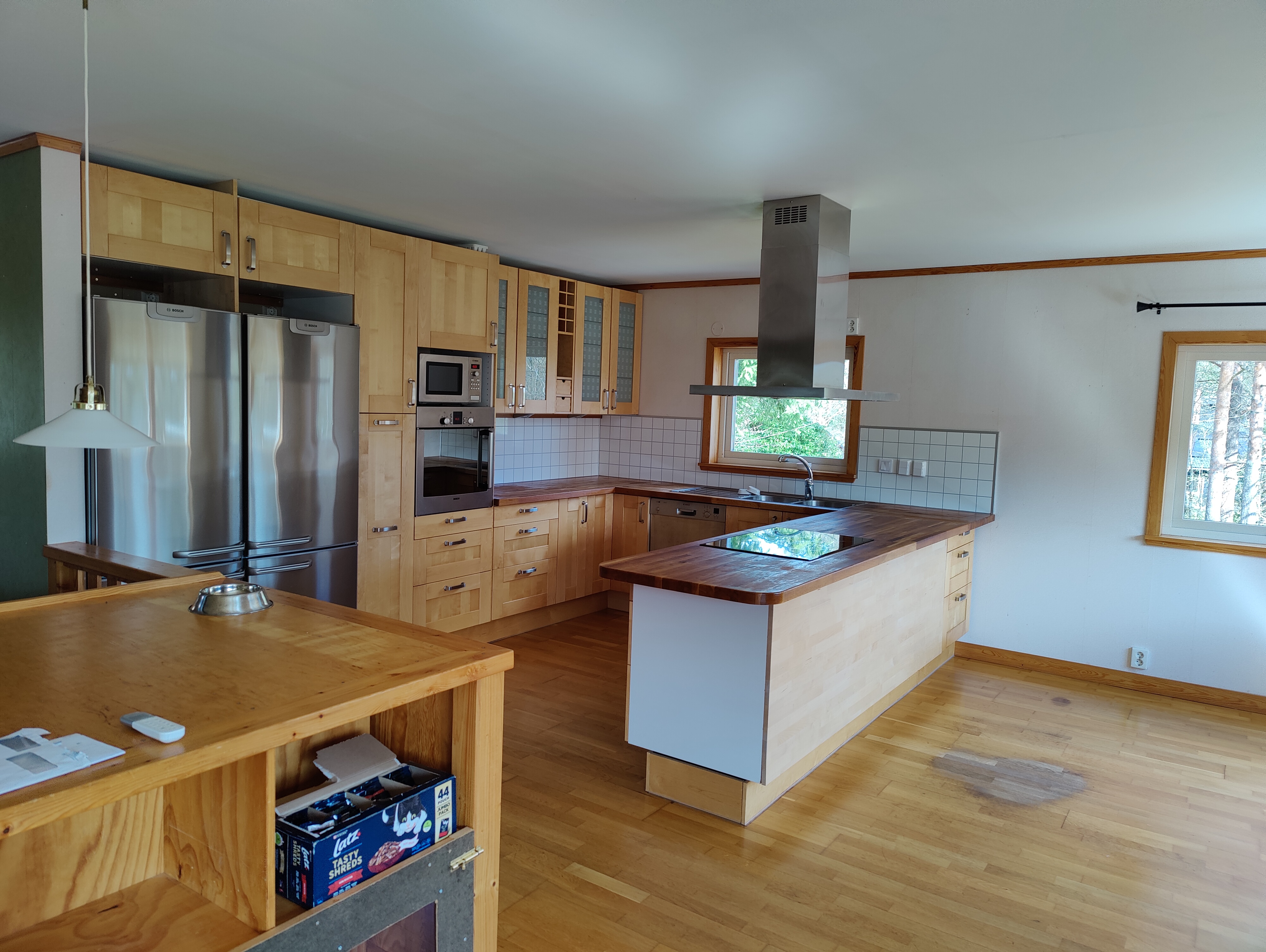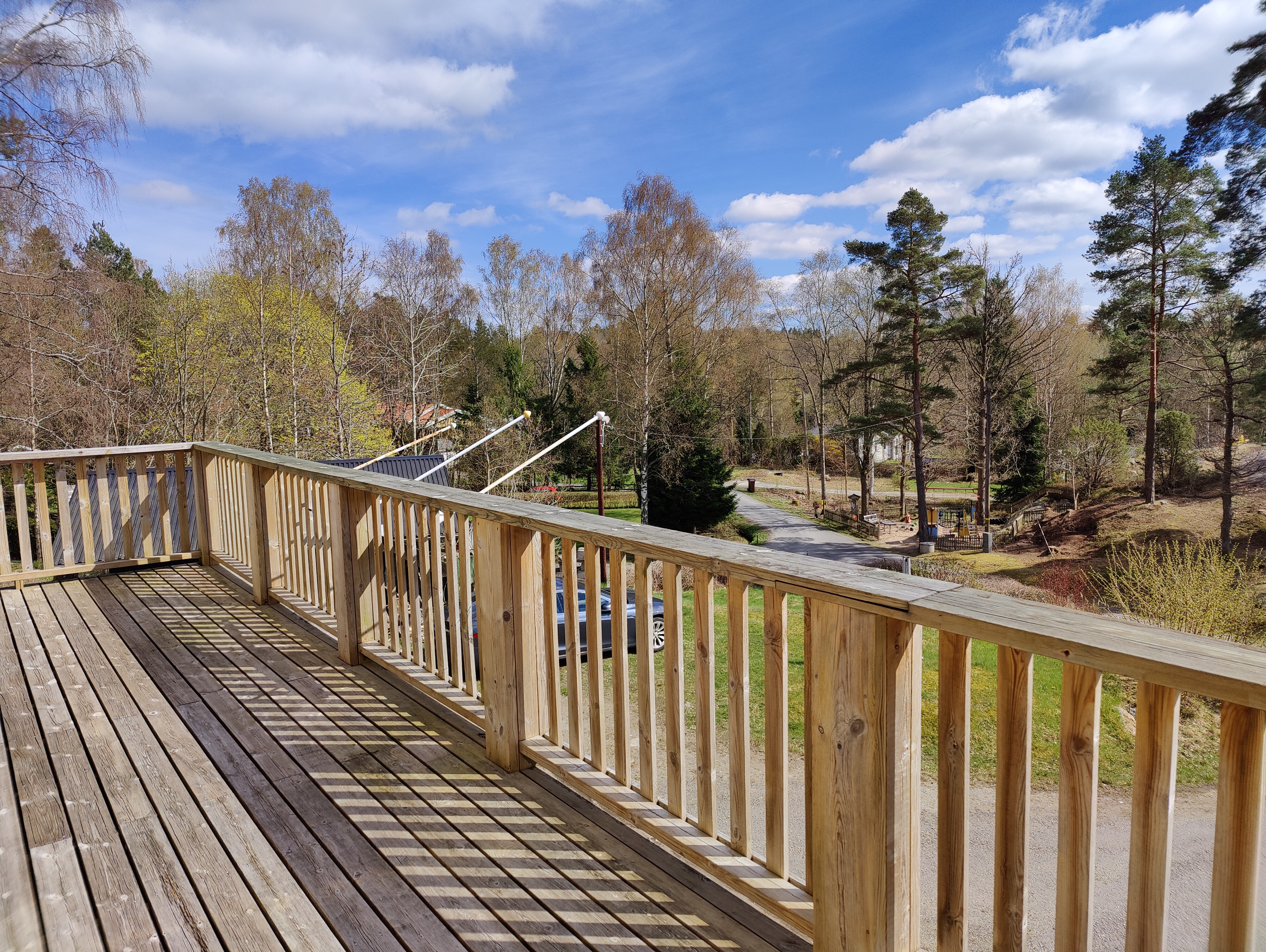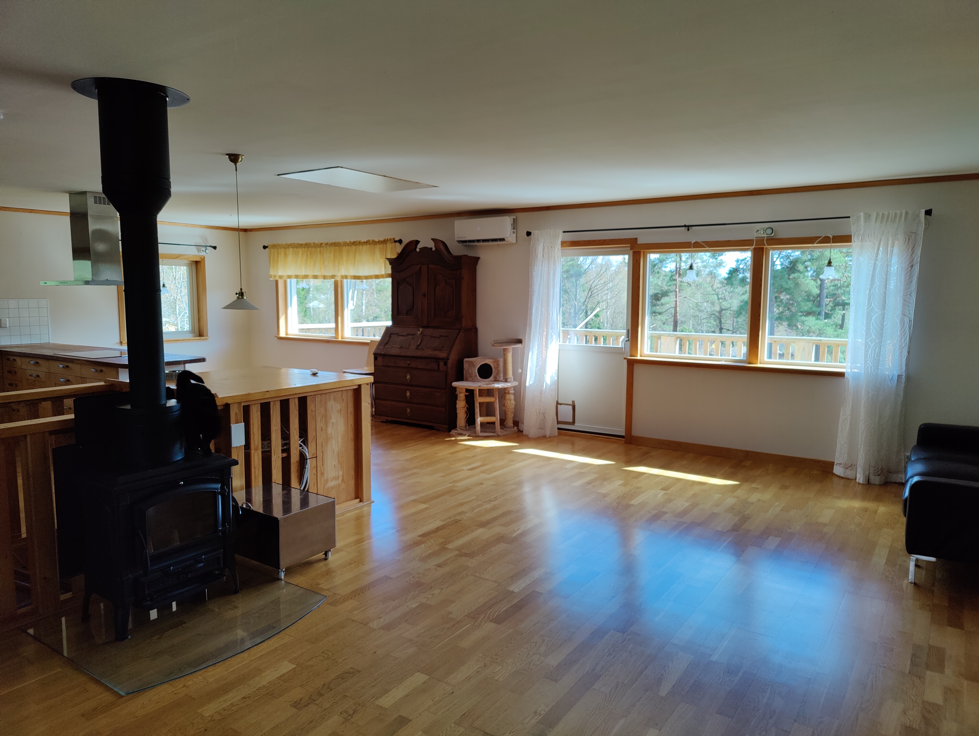 Vårt hus ligger utanför Mölnlycke, och är byggt under 2000-talet. Vi hyr i nuläget bara ut övervåningen (ca 95 kvm boyta). Den består av 2 sovrum samt kök och vardagsrum med öppen planlösning, och den kommer att vara omöblerad. Badrummet har duschhörna och är utrustat med en tvättmaskin från december 2020. Det går en bred balkong längs hela husets långsida i sydväst-läge. På motsatt sida av huset, vid huvudentrén, finns en mindre altan med skugga för varma dagar.
